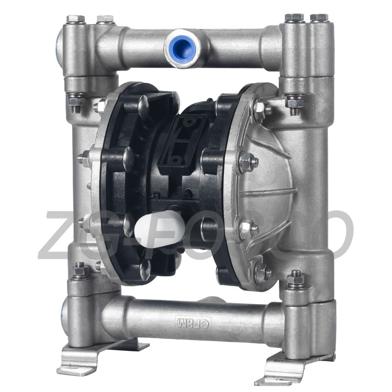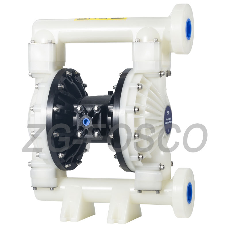 ZG-FOSCO氣動(dòng)隔膜泵品質(zhì)優(yōu)異,性能卓越,在各種應(yīng)用場(chǎng)合均能平穩(wěn)、安全、可靠的輸送介質(zhì)。具有簡(jiǎn)單、高可靠設(shè)計(jì)的空氣換向閥,使整個(gè)隔膜泵系列產(chǎn)品在各種應(yīng)用工況下實(shí)現(xiàn)穩(wěn)定可靠。氣閥體采用三向先導(dǎo)閥,部件可在不打開(kāi)流體腔部分的情況下進(jìn)行更換,即使在較低的壓縮空氣下,氣閥也無(wú)需任何潤(rùn)滑啟動(dòng)??筛鶕?jù)客戶(hù)使用要求和應(yīng)用場(chǎng)合選擇不通材質(zhì)的泵體、閥球、膜片,制定合理、高性?xún)r(jià)比的解決方案!ZG-FOSCO氣體隔膜泵不但可以輸送高磨損性、高腐蝕性介質(zhì),也可以輸送高粘度或含顆粒的介質(zhì)。